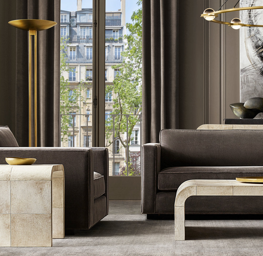 Influenced by the enduring beauty of Italian Classicism, Dora echoes one of the great Roman innovations of daily life – a bronze, fuel-burning dish – in this stunning torchiere. Nodding to their aesthetic language, Browning elevates the brass dish on twin metal bars, imbuing the form with perfect proportions and a minimalist sensibility.