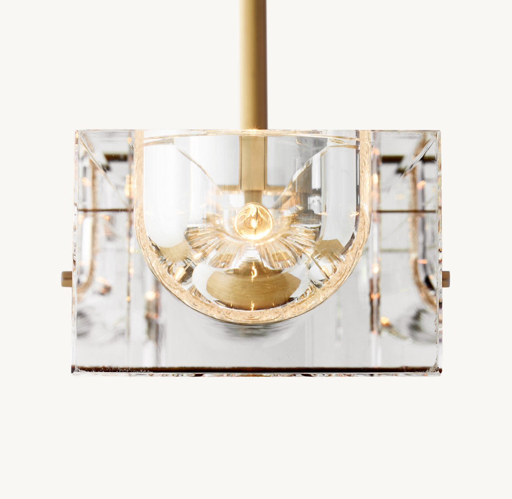 In our Savile collection, renowned San Francisco designer Dora has created a masterful study of solid and void. A monumental block of crystal is carved with a concave channel to hold an Edison bulb and set in a frame of solid brass. The crystal reveals its solidity when illuminated, refracting and reflecting the bulb within, but takes on a weightless transparency when dark.