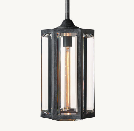 Deceptively simple, uncommonly familiar, designer Dora's pendant is defined by its refined details. Crafted of thick-gauge, solid metal, its crystal panels bevel outward to refract the light.
