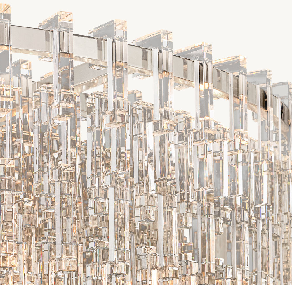 Inspired by industrial, machined metal chain, designer Dora reimagines interlocking open and closed links in stunning crystal glass. Pure and minimal, the stylized chain link is created with over 500 crystals and suspended sans wires, creating a resplendent halo of shimmering light.