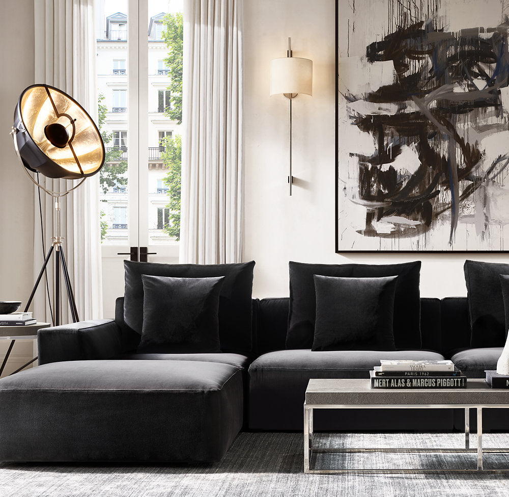 Designer Dora brings his signature refinement to our Vela collection. Crafted of brass, the crisp line of the finely honed vertical bar is perfectly punctuated by sculptural wall mounts and topped with a floating geometric linen shade. The look – an artful interpretation of the architectural railing sconce – is distinctive, clean and modern.