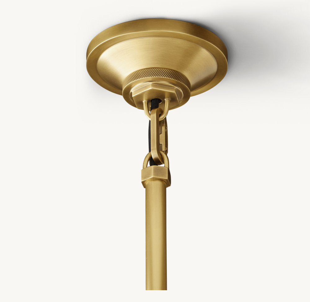 In an elevated spin on utility, our Machinist Pendant by Dora is inspired by the functional fixtures used in workshops and factories throughout the mid 20th century. Bridging the line between heritage and modernity, the classic domed cloche shade is held in place by a sleek geometric metal yoke, whose precision craftsmanship is defined by crisp angles, diamond knurling and exposed bolts.
