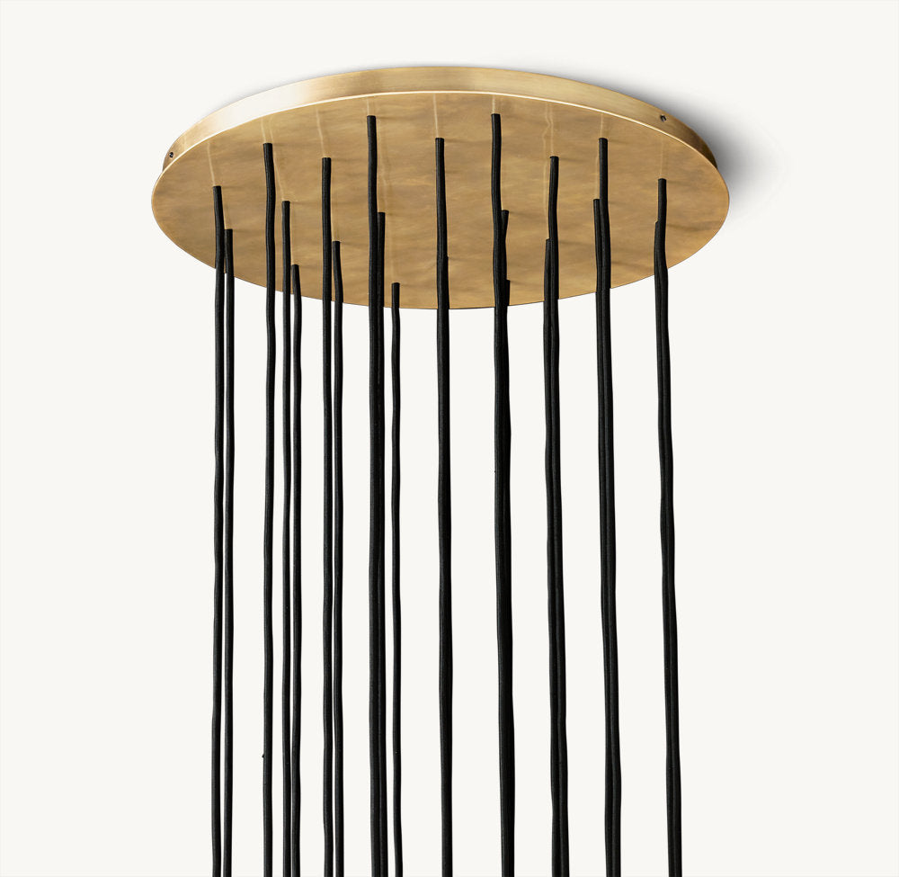 • Hangs from a black fabric cord; cord may be shortened at time of installation
