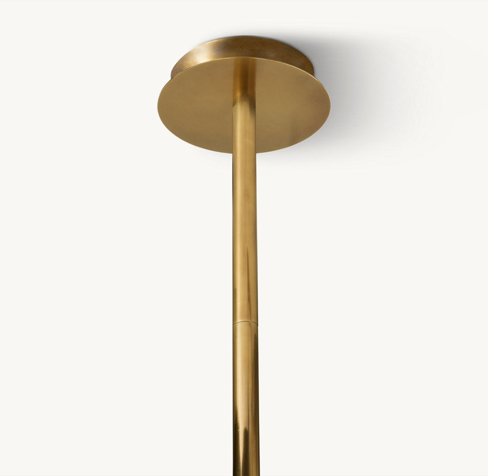 Delicate, handblown glass globes float at the ends of solid brass rods in our collection by designers Rudi Nijssen and Dominique Sente. Crafted in Poland by master glassmakers, each fixture conveys fluidity and motion yet is anchored in the pure modern architecture of its form.