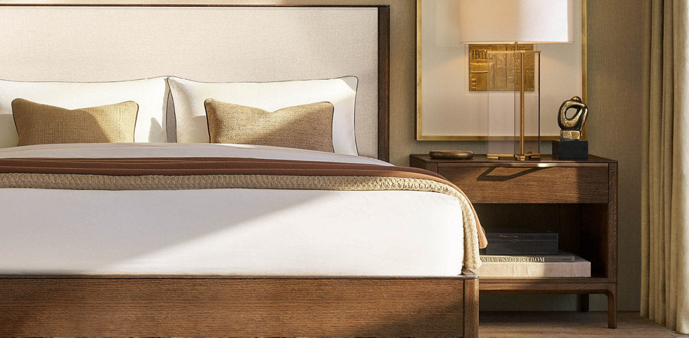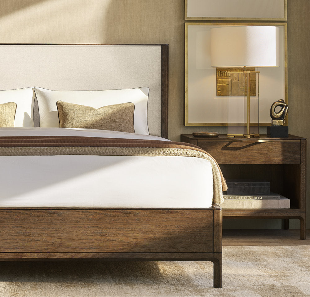 Purity of line and material mark our lamp's simple yet sculptural silhouette. Informed by 1960s International Style architecture, interlocking planes of crystal glass recall structural supports with three projecting fins. The spare geometry is bordered in metal for a rich material counterpoint, while its linen drum shade gently diffuses the light.
