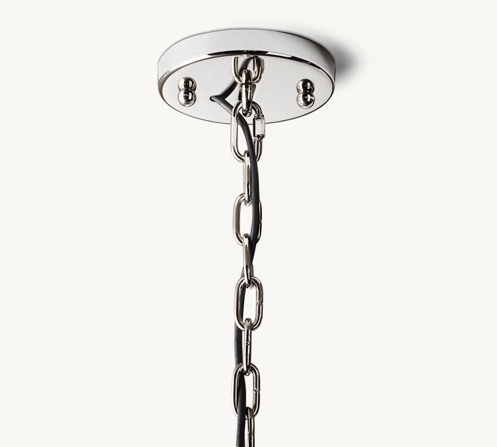 - Suspended from a metal chain and ceiling canopy; chain may be shortened at time of professional installation