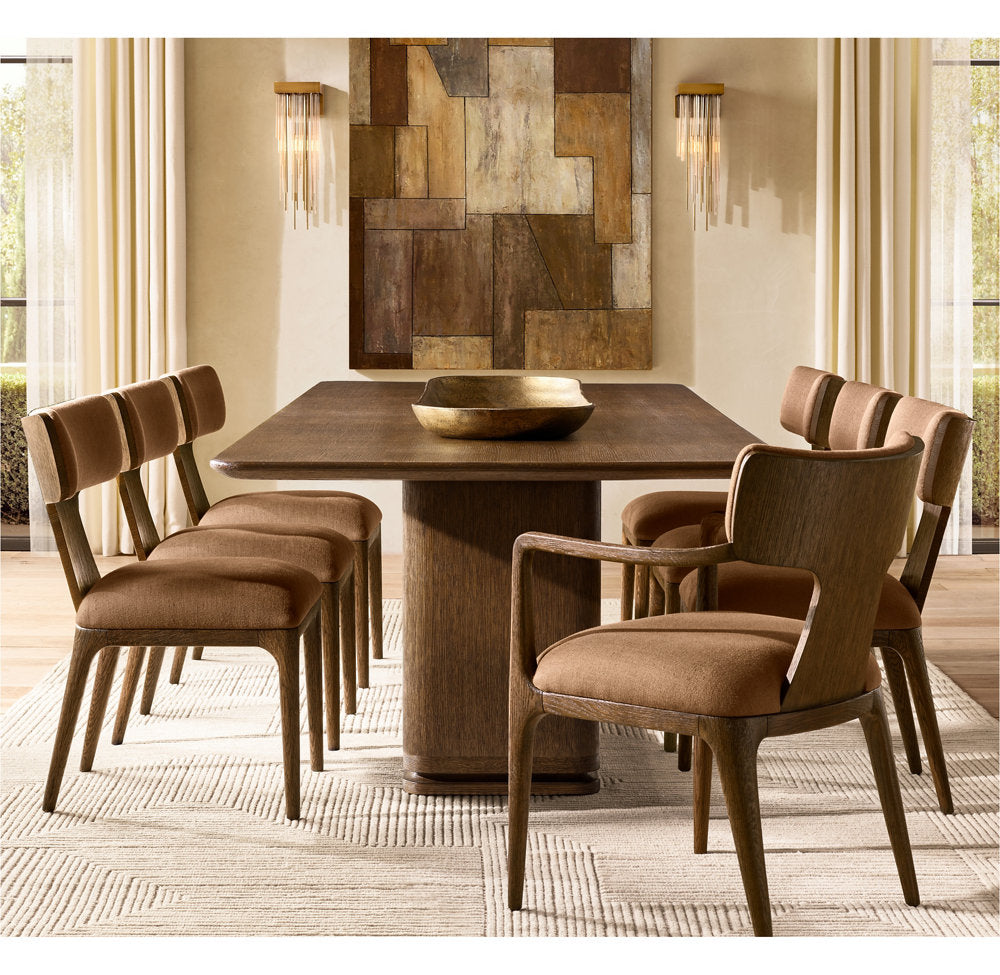 A cascade of crystal and metal rods coexist in this dazzling display of light designed by Dora. Artfully evoking rainfall frozen in time, hundreds of slender tubes are suspended asymmetrically from a sleek canopy, casting a refractive glow to dramatic effect.