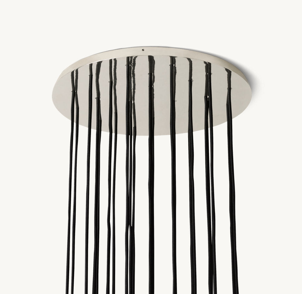 - Hangs from a black fabric cord; cord may be shortened at time of installation