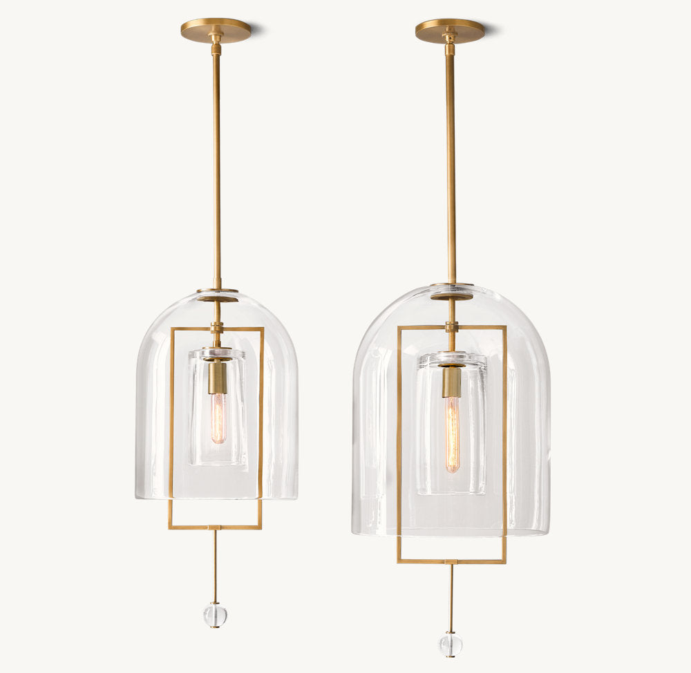 Antique scales and other instruments of measure inspired this collection by master glass designer Dora, in which cloches and spheres of blown glass are suspended from metal frames in perfect equipoise. Blurring the line between lighting and sculpture, each piece acts as a radiant focal point and a potent symbol of balance.
