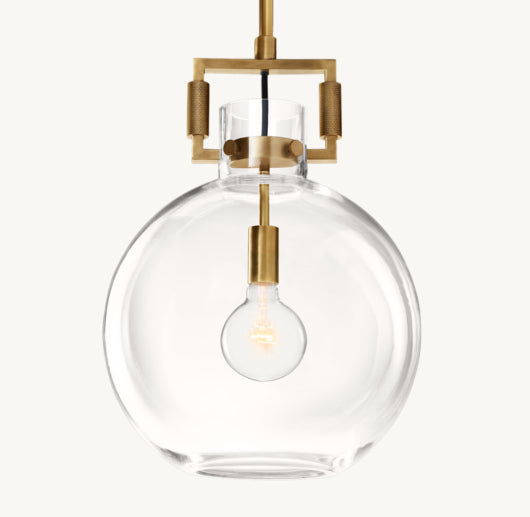 A study in positive and negative space, density and openness, strength and fragility, our Machinist Pendant by Dora is a yin and yang exploration. Crafted of solid metal, the geometric yoke reveals its industrial inspiration. In contrast, the clear glass surround is barely there, echoing the form of a shade. An ultra-slim Edison bulb housed within reveals arresting filaments of light.