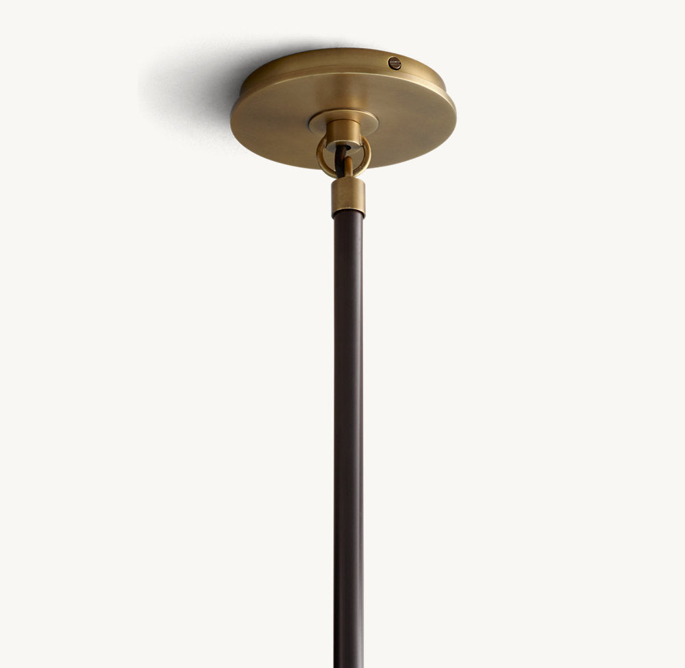 Inspired by 1940s industrialism, our globe chandelier's lines and spheres are reminiscent of an urban subway map. Eight glass shades are joined by metal tubing and carefully balanced on vertical threaded rods.