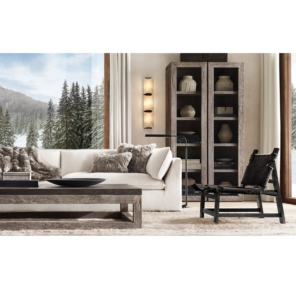 Translucent calcite is cut in a sheer and faceted slab in our dramatic collection. Warm light shines through the stone, accentuating the play of crystal formations within. Designed by Dora, the collection showcases natural beauty with a minimalist sensibility.