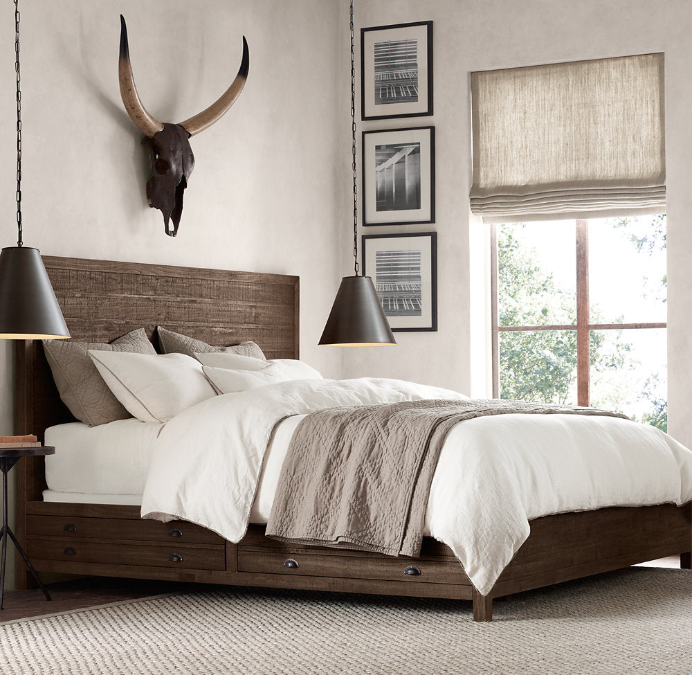Send focused light upward and downward via our metal-shaded fixture inspired by an industrial pipe section – a seamless wrap of steel with an aged, burnished finish.